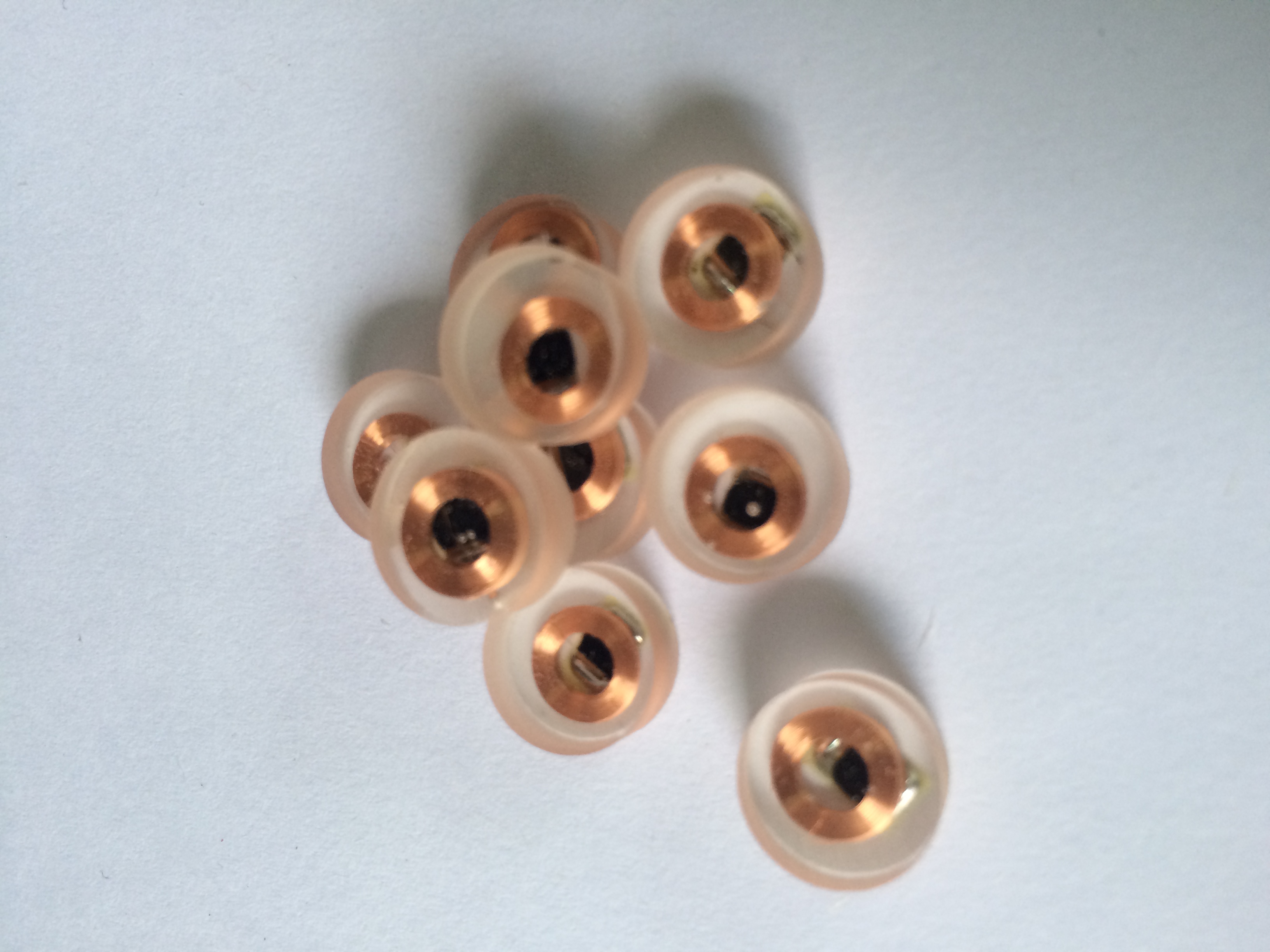 產品簡介: 規格:外徑17(mm) 讀寫時間:0.1-0.2(MS) 應用范圍:RFID標簽、智能卡、玩具遙控、通訊電路模塊,電子設備等 供電方式:無源卡 芯片:TK4100(可定制) 封裝材料:銅線圈+COB
