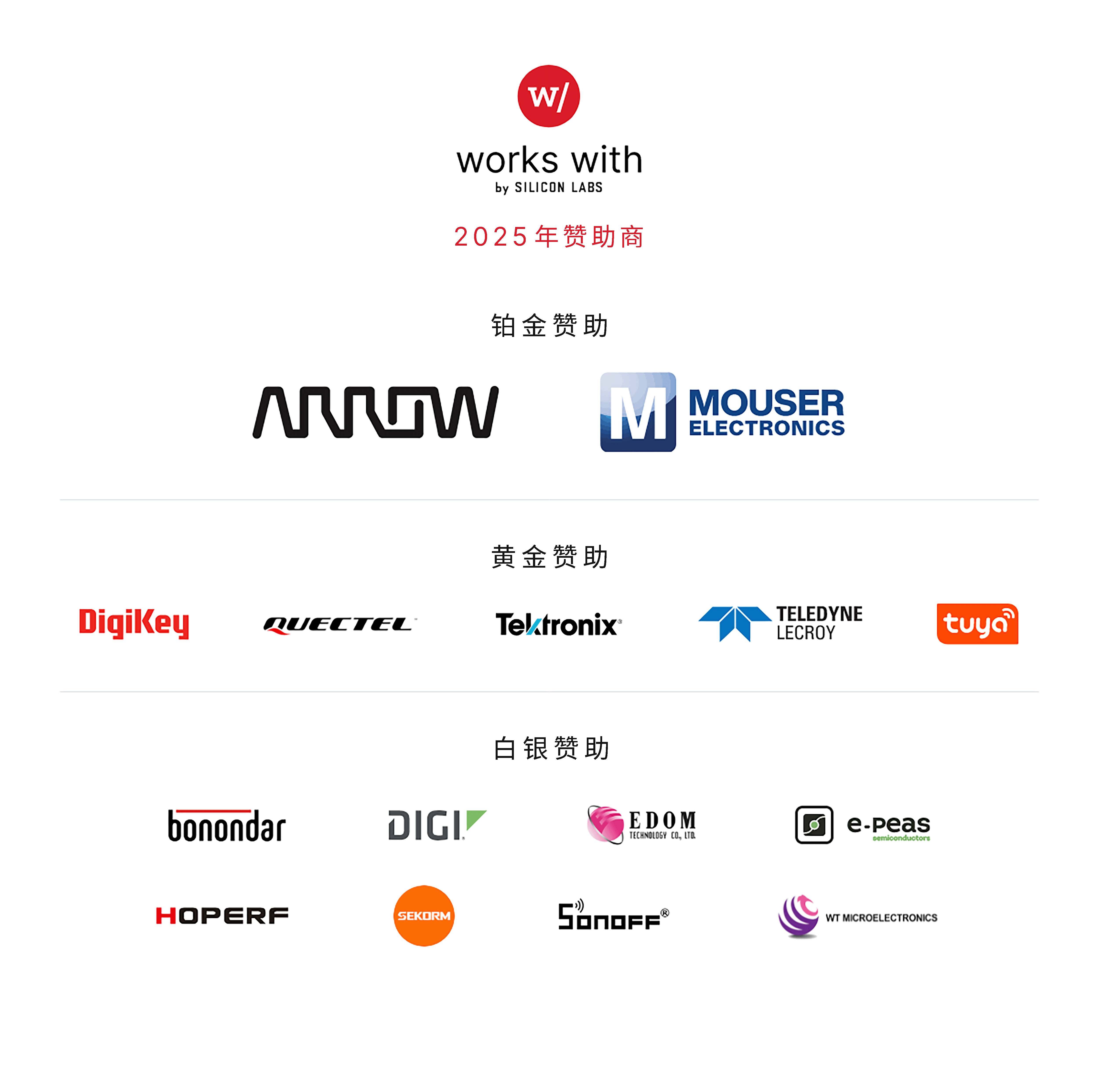 此外,大會現場還將設置創新展示區,匯聚艾睿電子(Arrow)、貿澤電子(Mouser)、涂鴉智能等贊助商合作伙伴的最新解決方案,其中有多家贊助商近年來一直運用Works With平臺來展示其各種智能網聯解決方案,收獲成效頗豐。在這些展示活動中,開發人員可在展示區與專家面對面交流,獲取從芯片選型、模組開發到產品量產的全鏈條支持,加速商業化進程,推動物聯網產業的爆發。芯科科技的合作伙伴們為每一屆大會帶來的解決方案,都是根據系統開發人員或集成商的實際需求而量身打造的,成為了加速其最終產品研發和網絡集成的重要推手,因而吸引了大量開發者前往交流和商討合作。